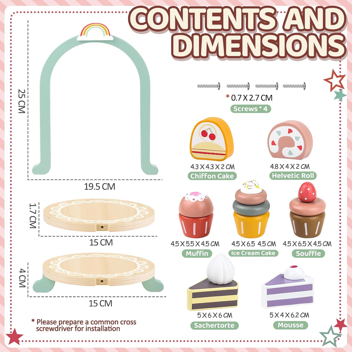 - ? Jemné príslušenstvo na pečenie: Imitovaná dezertná súprava od Airlab obsahuje 3 muffiny, 2 valčeky na cesto, 2 sušienky s maslovým krémom a 1 stojan na koláče. Zábavné a farebné dezertné hračky vyzerajú veľmi realisticky a robia oslavu narodenín/čajového večierka ešte príjemnejšou.