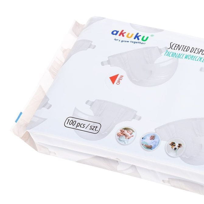 Vrecká na použité plienky – hygienické a voňavé. Jednoducho neutralizujú nepríjemný zápach plienok aj vlhčených obrúskov používaných pri prebaľovaní bábätka. Veľkosť vrecka umožňuje zbaviť sa plienky akejkoľvek veľkosti. Vrecká majú jednoduché viazanie. Balenie je vybavené praktickým uzatváraním. Veľmi dobre sa hodia na použitie doma, na prechádzke aj na cestách.