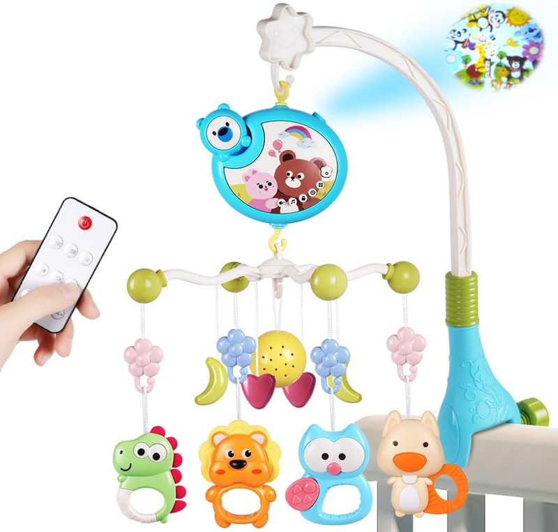 Kolotoč nad postieľku s projektorom a diaľkovým ovládačom — nočné svetlo, 317 uspávaniek, otáčanie 360°