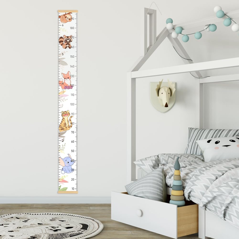 Zachyťte každý centimeter detstva. Dekoratívny meter na výšku z odolného plátna, hladkého dreva a konopného lana umožňuje pohodlne sledovať rast dieťaťa od prvých dní a zároveň krásne zdobí detskú izbu.