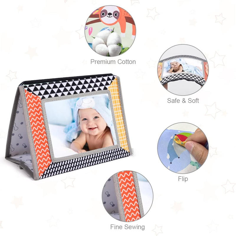 - Vysoká kvalita a exkluzívny dizajn: bezpečnosť detí je najdôležitejšia. Materiál, z ktorého je detské zrkadlo vyrobené, je bavlna, ktorá je bezpečná, neškodná a neohrozuje zdravie dieťaťa. Táto push-up hračka kombinuje látkovú knižku a zrkadlo na hranie, čo uľahčuje skoré učenie pre deti v každom veku.