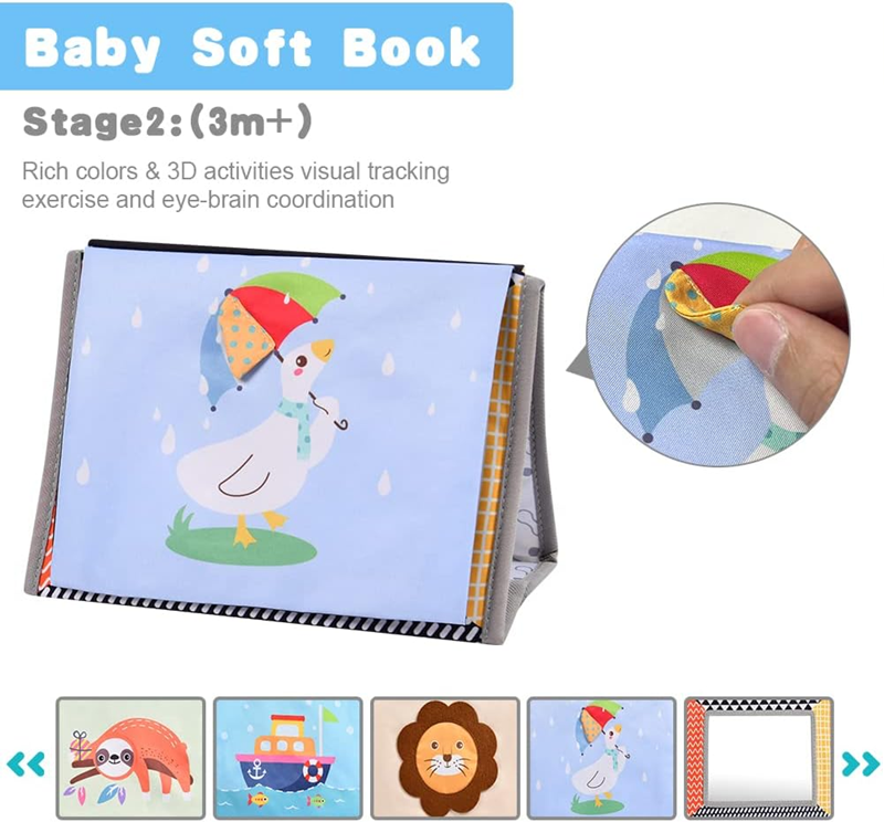 - Skladacia hračka so zrkadlom pre bábätká: bohaté farby mäkkej knižky pre deti ľahko upútajú pozornosť dieťaťa a roztomilé vzory môžu rozvíjať cit pre farbu a tvar dieťaťa a podporovať skorý rozvoj zraku dieťaťa.