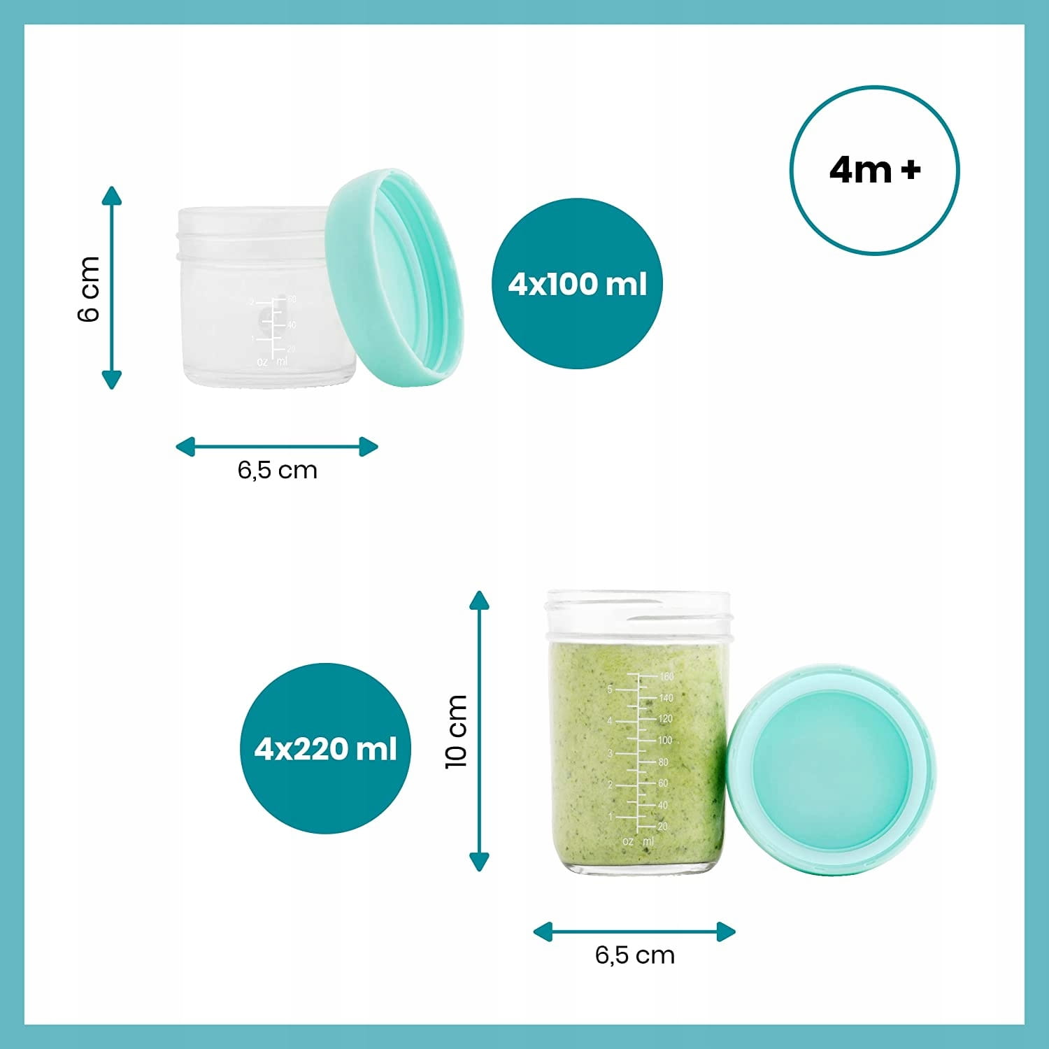 - Odolné a recyklovateľné: tieto nádoby na skladovanie jedla pre bábätká a deti sú vyrobené zo skla. Sklo je ekologický, odolný a recyklovateľný materiál, vďaka čomu ho môžete používať dlhšie.