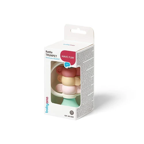 Farebná hrkalka TRUMPET je ideálna prvá hračka pre vaše bábätko. Je vyrobená výlučne z bezpečných a na dotyk príjemných materiálov. Upúta pozornosť svojimi jasnými farbami a jednoduchým dizajnom. Jemné zvuky priťahujú pozornosť dieťaťa a rozvíjajú jeho sluch. Hrkalka TRUMPET je vynikajúci spôsob, ako rozvíjať koordináciu a manuálne zručnosti zábavným a bezpečným spôsobom.