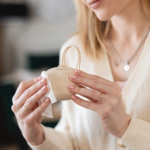 Stačí, ak puzdro utriete vlhkou handričkou, umyjete pod tečúcou vodou alebo v umývačke riadu. Ľahko ho udržíte čisté a zabezpečíte hygienické podmienky na skladovanie cumlíka.