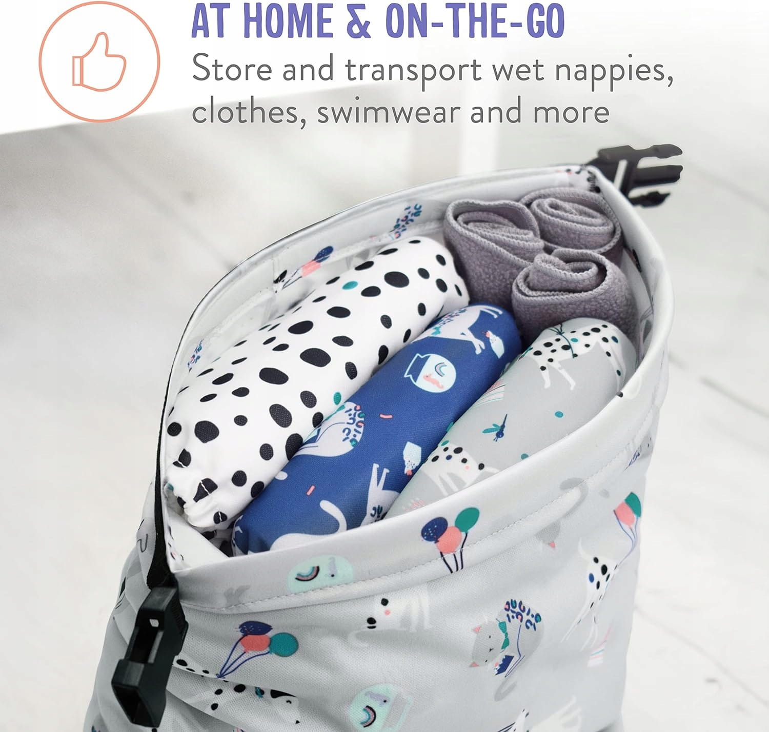 - JEDNODUCHÉ SKLADOVANIE - Zmestí sa do nej 4 revolučné opakovane použiteľné plienky. Vodotesné uzatváranie chráni predmety pred pretekaním a udržiava ich suché - pomyslite len na možnosti!