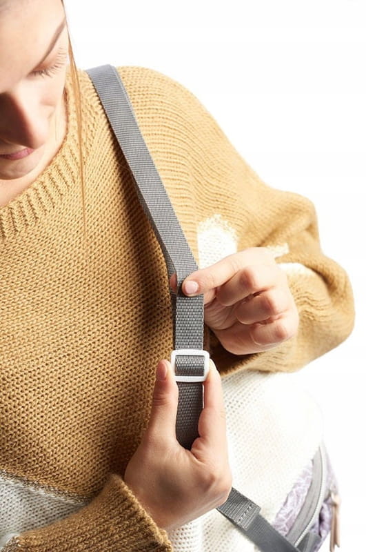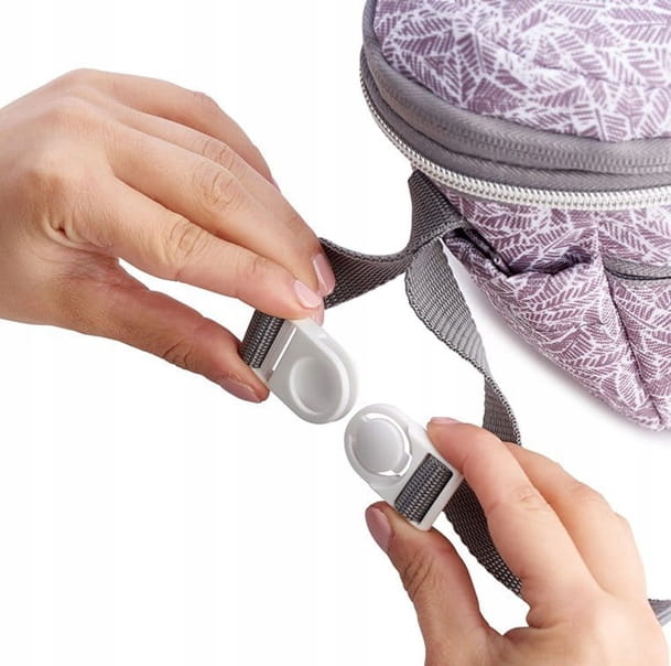 - Univerzálny, multifunkčný popruh – na upevnenie na rám kočíka alebo bicykla, zapnutie v páse alebo prehodenie cez rameno.