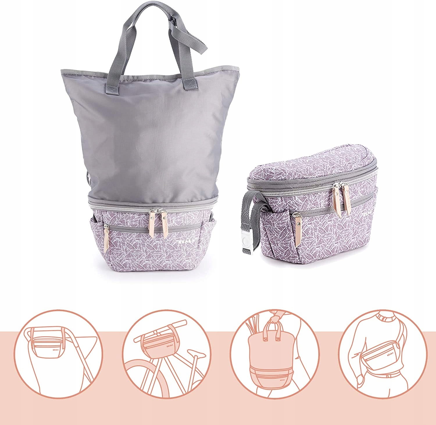 Inovatívna, ľahká a mimoriadne funkčná taška organizér pre mamy typu 2 v 1 od francúzskej značky BEABA, ponúkajúca niekoľko možností použitia podľa aktuálnych potrieb. Na každý deň bez problémov uložíte všetky potrebné detské doplnky na prechádzku alebo krátky výlet, ako aj svoje drobnosti – má totiž podobu kapsičky - organizéra s optimálnou kapacitou 3 l, ktorú – vďaka multifunkčnému popruhu – môžete zavesiť na rám kočíka alebo riadidlá bicykla, ale aj pripnúť na pás ako väčšiu ľadvinku alebo prehodiť cez rameno. Navyše ju môžete rýchlo premeniť na veľkú tašku typu shopper a získať ďalších 8 l objemu!