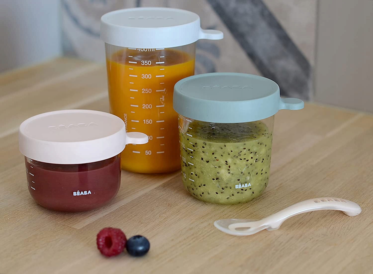 - Pohárik na skladovanie jedla francúzskej značky BEABA, vyrobený z najkvalitnejšieho skla. Veľmi odolný – nefarbí sa a nedeformuje. Umožňuje nielen pohodlné skladovanie, ale aj odmeranie presného množstva jedla potrebného pre dieťa – má viditeľnú mierku v ml a oz – unciach. Nádobka je vhodná aj na mrazenie a ohrievanie jedál, vrátane mikrovlnky. Hermetické, mäkké viečko dobre prilieha k poháriku, čo umožňuje zachovať chuť a arómu jedla, a vďaka špeciálnemu úchytu sa ľahko otvára.