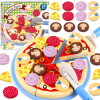 - ? Interaktivita a zapojenie: Drevená hračka na pizzu má odnímateľné polevy, vďaka čomu môžu deti priraďovať a skladať diely, aby si vytvorili vlastnú pizzu. Krájač na pizzu je veľkým hitom a krájanie pizze, ktorá je spojená pomocou samolepiacich záložiek, je zábavné, pretože vydáva zvuk trhania.
