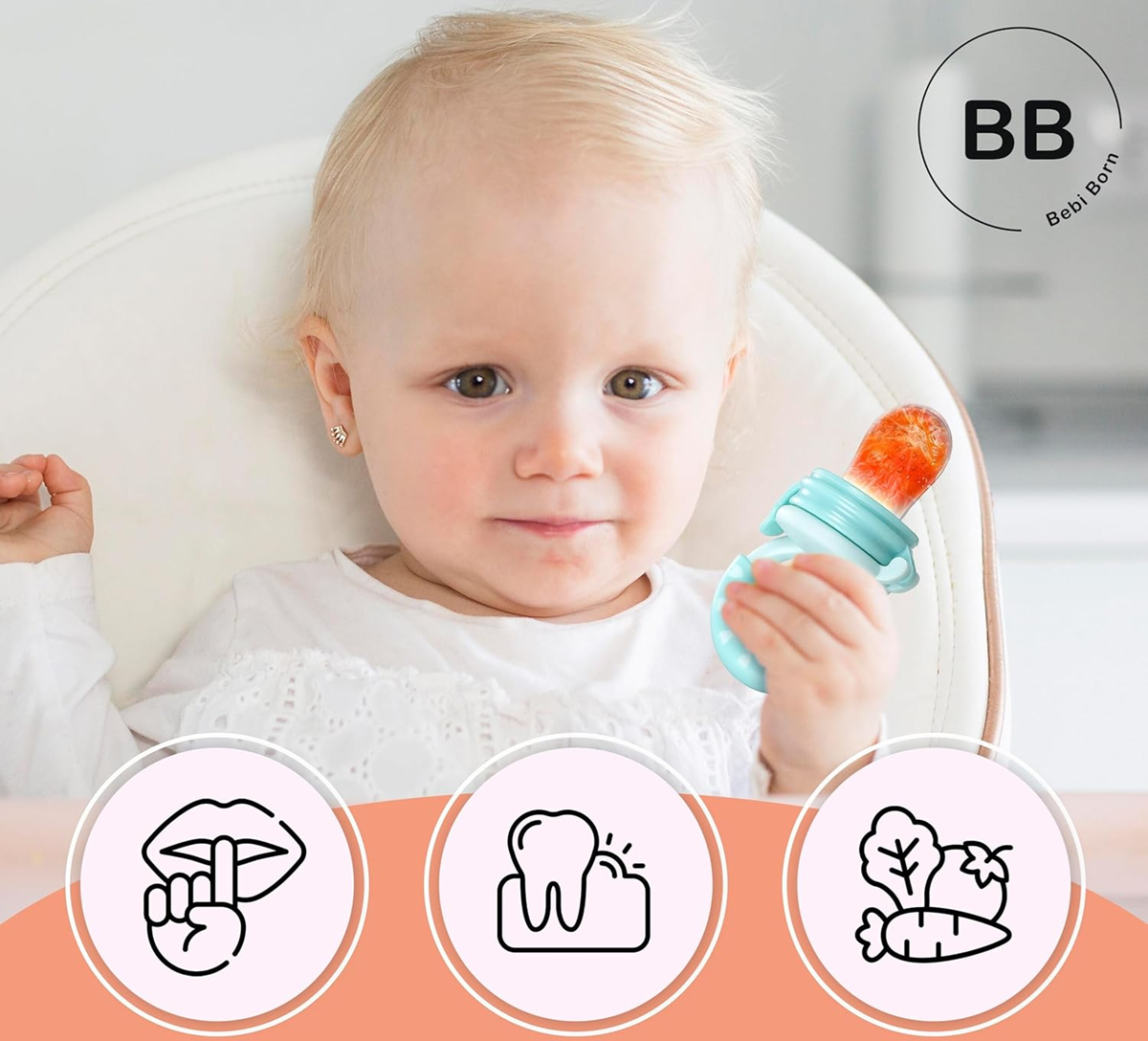 BEBI BORN hryzátko podávač na ovocie pre deti 3-24m 3 náustky