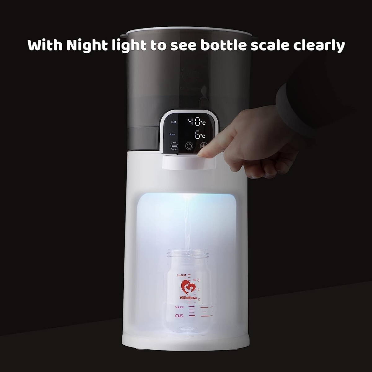 - NOČNÉ SVETLO: Ohrievač fliaš, vstavané nočné svetlo na prípravu fľaše s umelým mliekom o polnoci. Môžete ho vypnúť, ak ho nepotrebujete