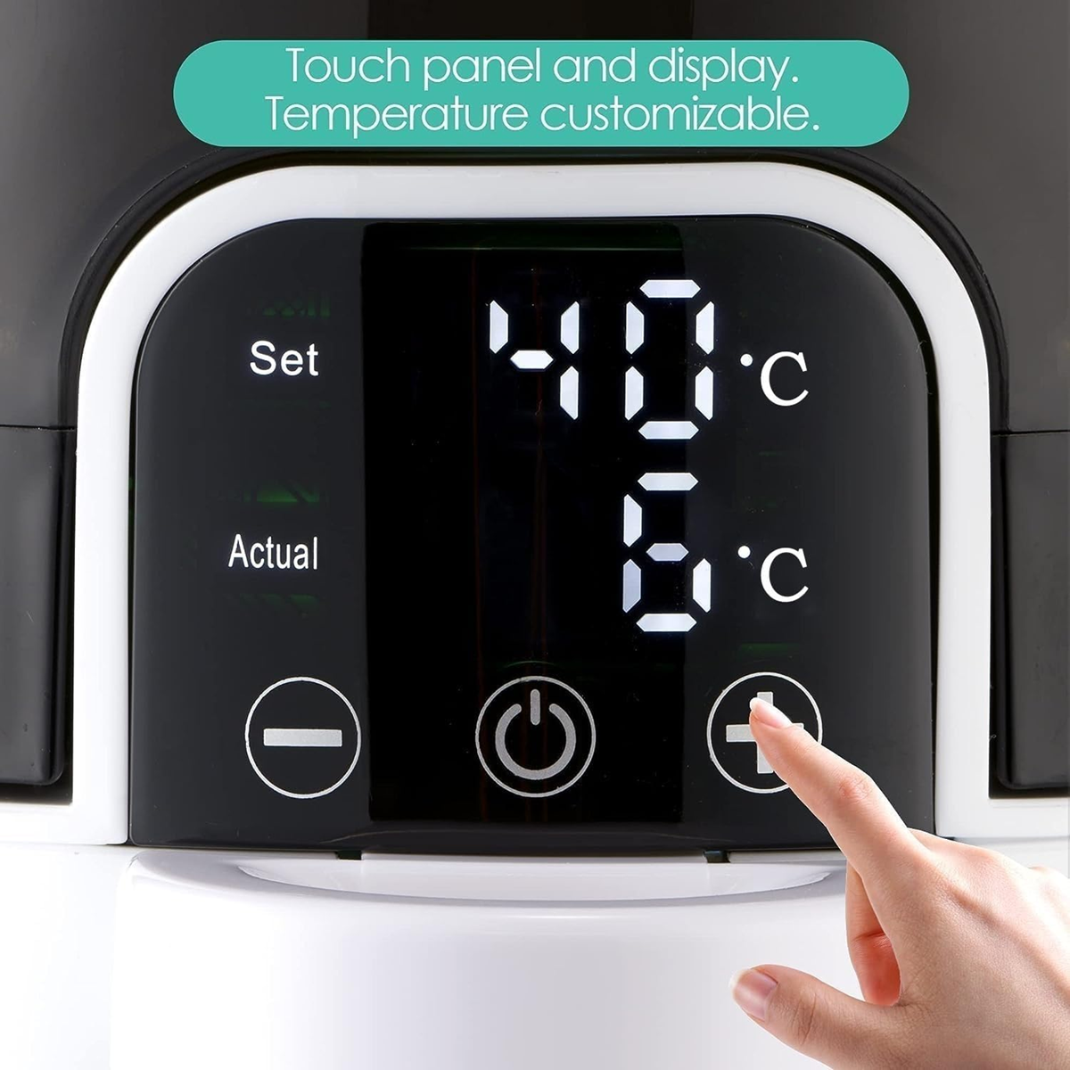 - DOTYKOVÝ LED DISPLEJ: Okamžité ohrievanie. LED dióda zobrazuje teplotu v reálnom čase a umožňuje nastaviť požadovanú teplotu (od izbovej teploty do 70°C)