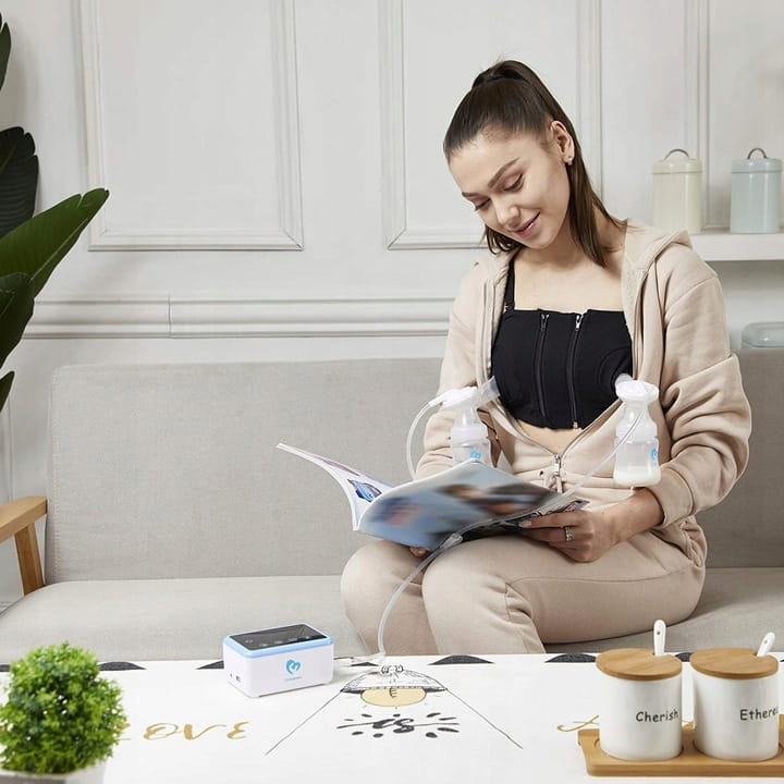 - 【4 nastaviteľné režimy a pamäťová funkcia】Naša elektrická odsávačka mlieka značky Bellababy je vybavená režimami masáže, normálneho sania, nepretržitého sania, zmeny frekvencie a 9 úrovňami sania na výber.