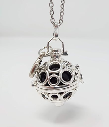 - Retiazka je zakončená otváracou šperkovnicou, v ktorej sa nachádza čierna guľôčka so zvončekom vo vnútri.