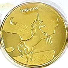 - Obojstranná minca s motívmi Víly Zúbkovej a jednorožca.