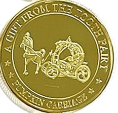 - Obojstranná minca s motívmi Víly Zúbkovej a tekvicového koča.