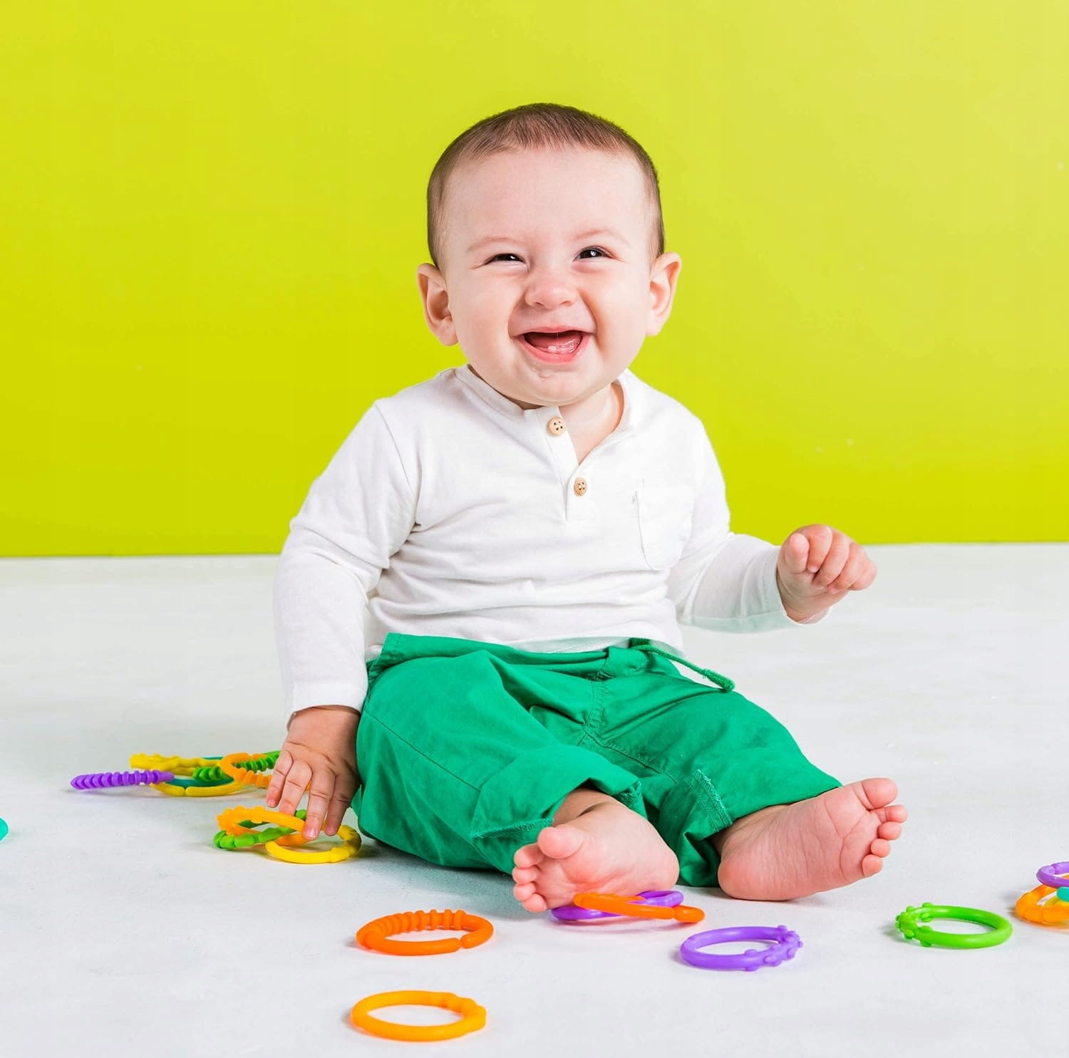 BRIGHT STARTS farebné krúžky na hranie a pripevnenie hračiek 24 ks.
