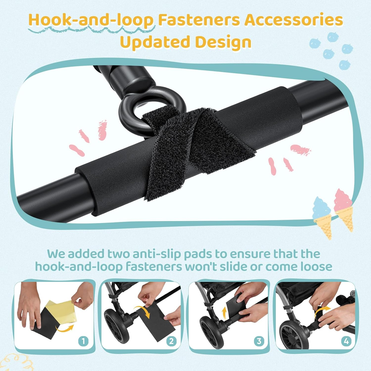 - 【Protišmykové penové podložky pre stabilitu】Naša prídavná doska ku kočíku pre druhé dieťa je dodávaná s dvoma suchými zipsami s dĺžkou 55 cm na jednoduché upevnenie na priečku alebo bočné tyče dosky. Navyše sú v balení 2 protišmykové podložky, ktoré zabezpečia, že suché zipsy zostanú bezpečne na svojom mieste a nezošmyknú sa ani neuvoľnia.