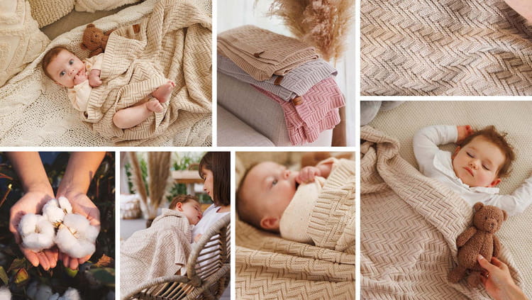 Pletená bavlnená deka bola vytvorená s ohľadom na citlivú pokožku bábätiek a starostlivých rodičov. Vyrobená je zo 100% certifikovanej organickej bavlny – bez chemikálií, pesticídov a škodlivých farbív. Hypoalergénna a antibakteriálna deka príjemne objíme aj veľmi citlivú a alergickú pokožku vášho dieťaťa. Deka pre bábätká z organickej bavlny je mimoriadne mäkká na dotyk a nestráca svoju hebkosť ani po praní. Umožňuje pokožke dýchať a má termoregulačné vlastnosti. Je to ideálny celoročný spoločník! Zabalíte do nej dieťatko doma, na cestách aj na prechádzke. Vyrobená ekologickým spôsobom, je šetrná k životnému prostrediu a bezpečná pre vaše bábätko.