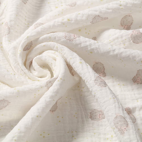Vďaka prirodzene riasenej štruktúre je tkanina hrubšia, pevnejšia a oveľa odolnejšia voči opotrebeniu ako štandardný mušelín. Ideálna na každodenné použitie a na dlhé roky. Netreba ju žehliť a s každým praním je ešte mäkšia. Je to skvelý nápad na prvý darček pre bábätko.