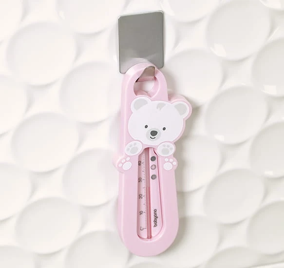 Kúpeľňový teplomer bezpečne a spoľahlivo pomôže získať a udržať správnu teplotu kúpeľa vášho dieťaťa. Na meranie sa používa parafín uzavretý v bezpečnej trubičke, čo zaručuje úplnú bezpečnosť pri používaní. Veľká a prehľadná stupnica uľahčuje odčítanie teploty. Vďaka ľahkej konštrukcii sa teplomer počas celej doby kúpeľa vznáša na hladine vody, čo umožňuje neustálu kontrolu teploty. Správna teplota vody by mala byť približne 37 stupňov Celzia a je na stupnici označená usmievavou tváričkou.