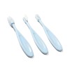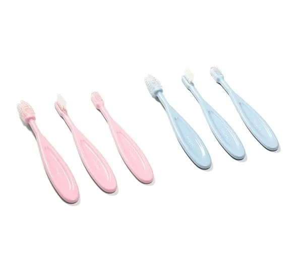 Sada jemných zubných kefiek je nepostrádateľná pri každodennej ústnej hygiene dieťaťa. V sade sa nachádzajú 3 kefky: prvá, silikónová, je určená na masáž ďasien pre deti, ktoré ešte nemajú svoje zúbky; druhá – silikónová, je určená na čistenie malých zúbkov; tretia – s mäkkými štetinami, je určená pre staršie deti. Kefky sú ideálne na učenie samostatného čistenia zubov.
