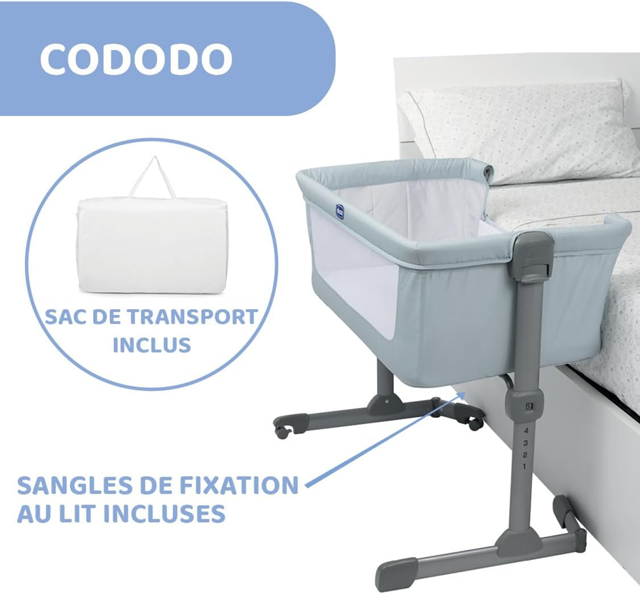 - Jednoduché a praktické skladanie: skladacia Chicco Next2Me Go sa rozkladá jednoducho a nevyžaduje demontáž.