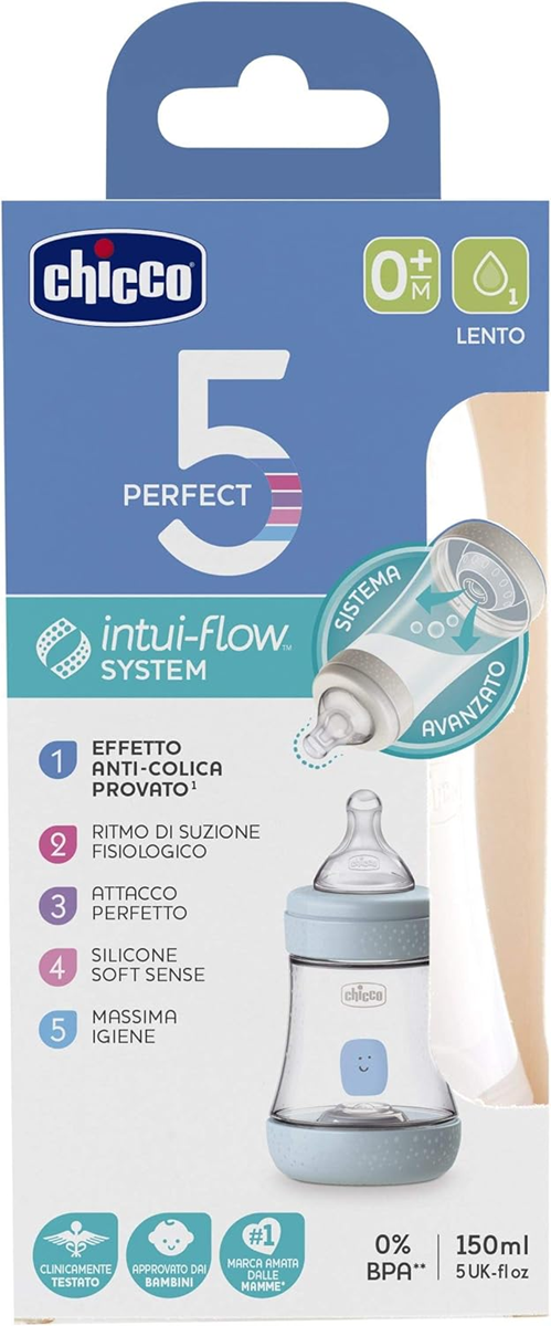 - Systém Intuiflow: vďaka kombinovanému efektu fyziologického sania a membrány rovnováhy na dne fľaše, inovatívny systém Chicco Intuiflow umožňuje fyziologické, intuitívne a prirodzené kŕmenie dieťaťa.