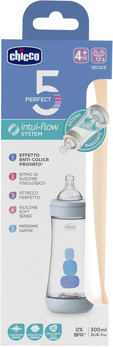 - Systém Intuiflow: vďaka kombinovanému efektu fyziologického sania a membrány rovnováhy na dne fľaše, inovatívny systém Chicco Intuiflow umožňuje fyziologické, intuitívne a prirodzené kŕmenie dieťaťa.