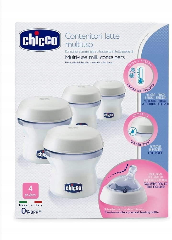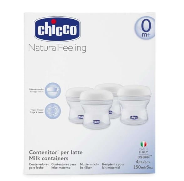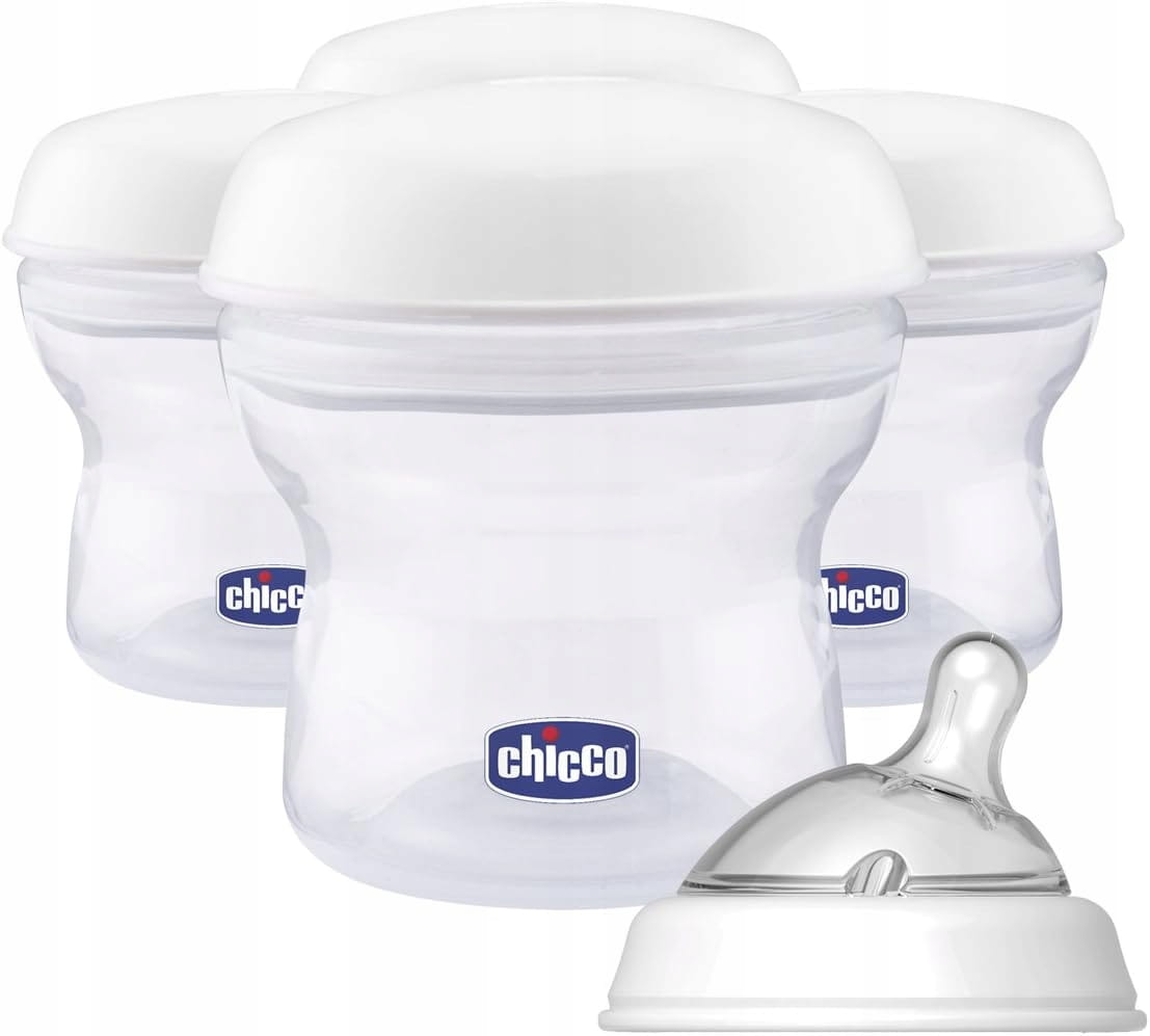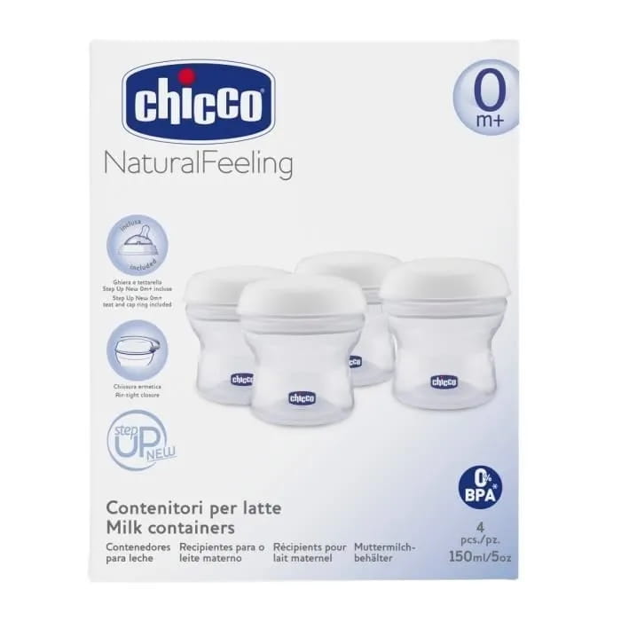 CHICCO nádoby na mlieko 4 x 150 ml + cumlík s viečkom