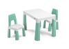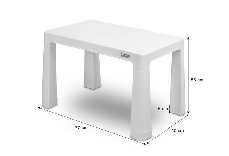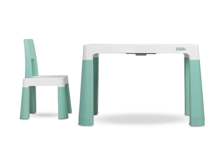 Monti je všestranný detský stolík so stoličkami. S jeho pomocou ľahko vytvoríte kútik na umelecké práce alebo hranie doma aj vonku. Súprava je vyrobená z vysoko kvalitného plastu – bezpečného a odolného voči rozmarom počasia aj divokej hre. Stôl a stoličky sú ľahké, takže ich dieťa môže samostatne prenášať. Vďaka jednoduchej konštrukcii sa Monti ľahko skladá – stačí spojiť jednotlivé diely na zacvaknutie. Stôl má 2 zásuvky, ktoré sa schovávajú pod doskou, a tiež možnosť zníženia výšky o 6 cm.