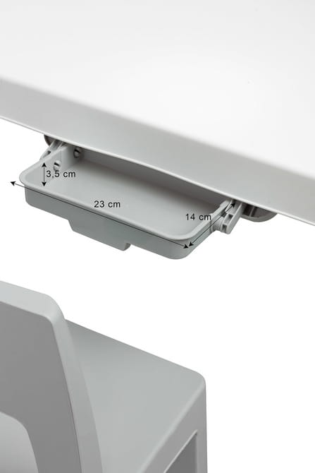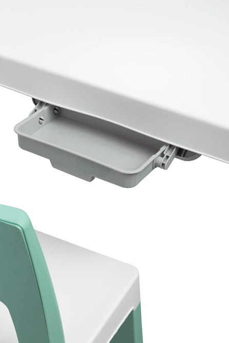 Stôl Monti je vybavený dvoma praktickými zásuvkami priamo pod doskou, ktoré ponúkajú ďalší priestor na kresliace potreby a drobné hračky. Moderný dizajn a pevná konštrukcia z neho robia nielen praktický, ale aj elegantný doplnok do detskej izby.