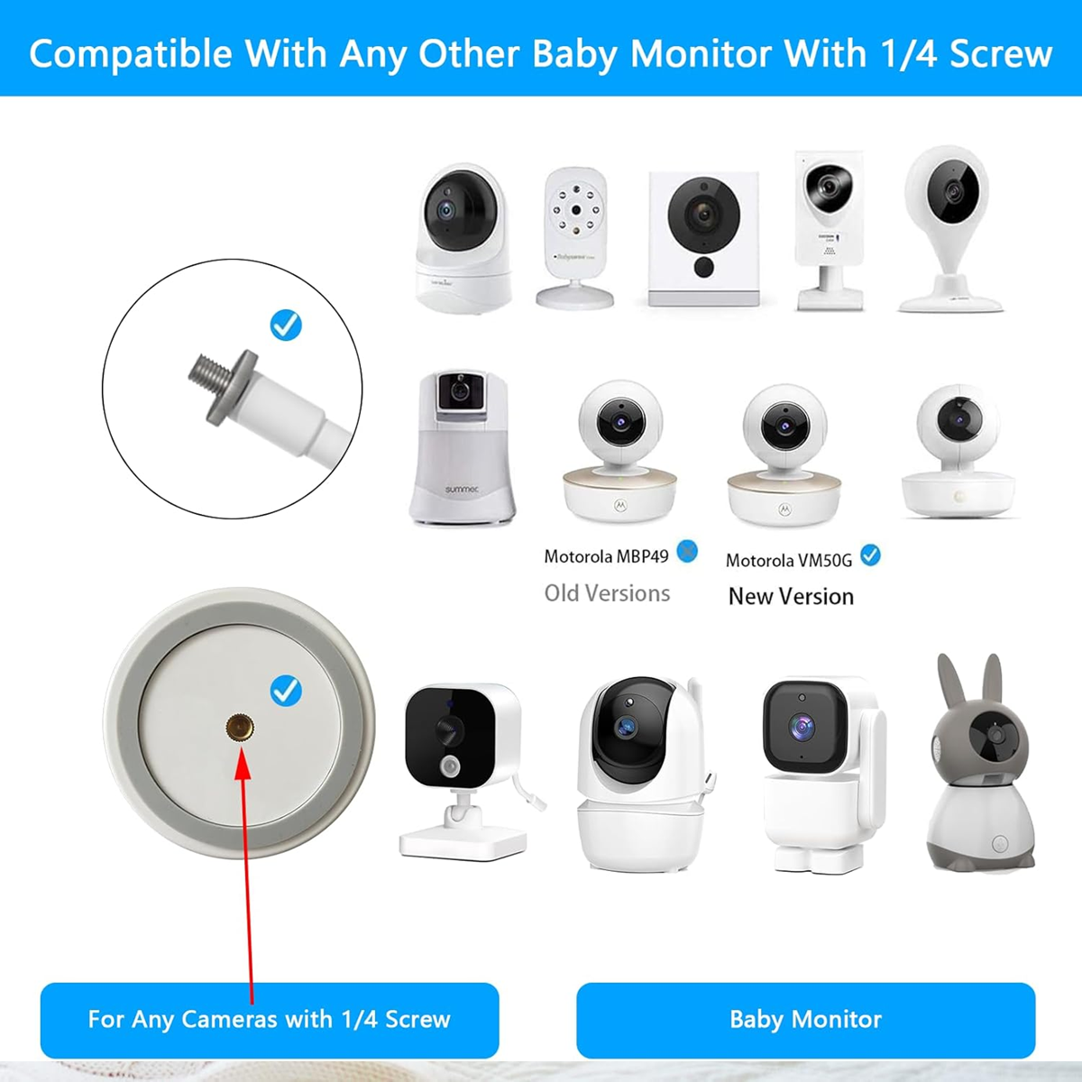 - âś…ă€Použitý model】: držiak na telefón pre pestúnku je mimoriadne výnimočná ochrana pre pestúnky Arlo / Motorola / Nannio Monitor / HelloBaby – univerzálny pre všetky ostatné zariadenia so skrutkou 1/4.