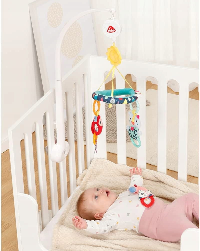 FEHN Color Friends kolotoč s hracou skrinkou na postieľku
