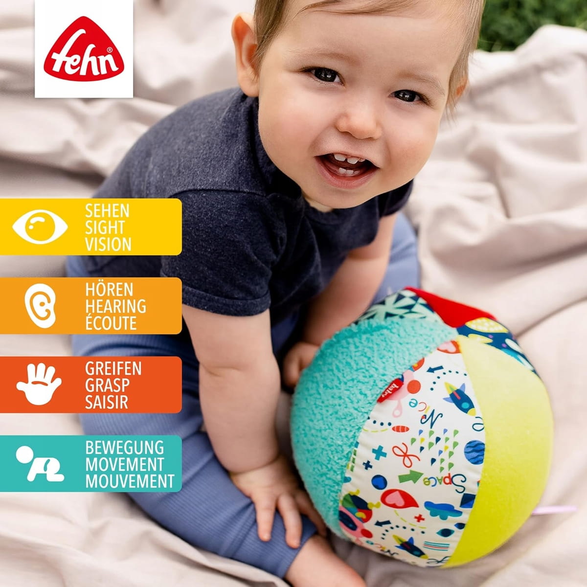 - Skvelá motorická hračka – zábavne objavujte svet: lopta pre bábätká podporuje hmat vďaka zmesi materiálov a prostredníctvom prvých pokusov o lezenie, hádzanie a chytanie rozvíja zručnosť, koordináciu ruka-oko a motoriku