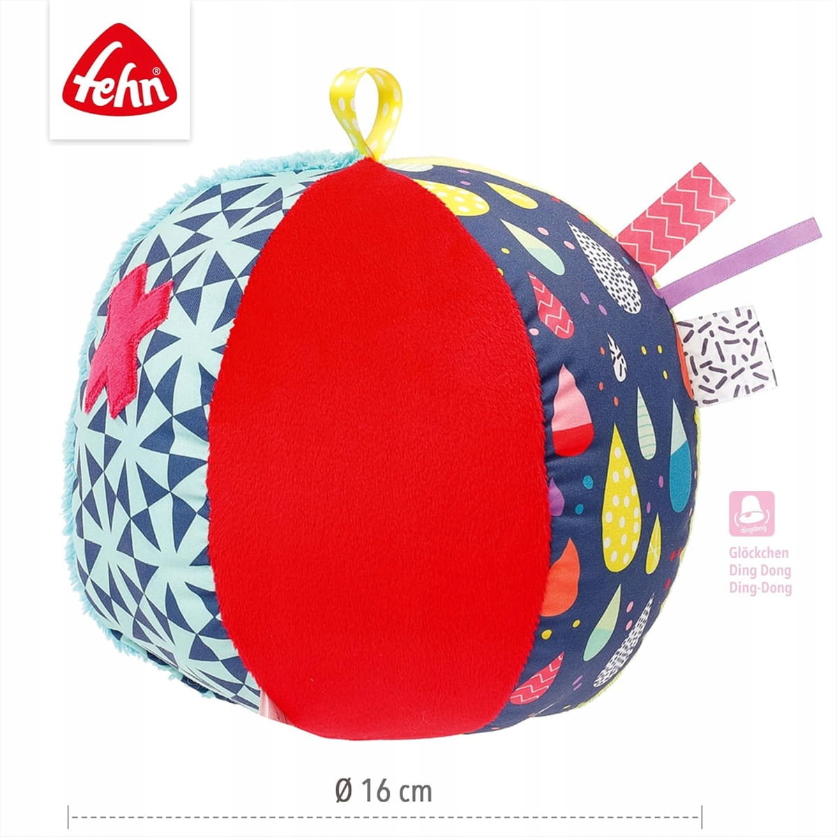 FEHN Farebná textilná lopta so zvukom 16 cm
