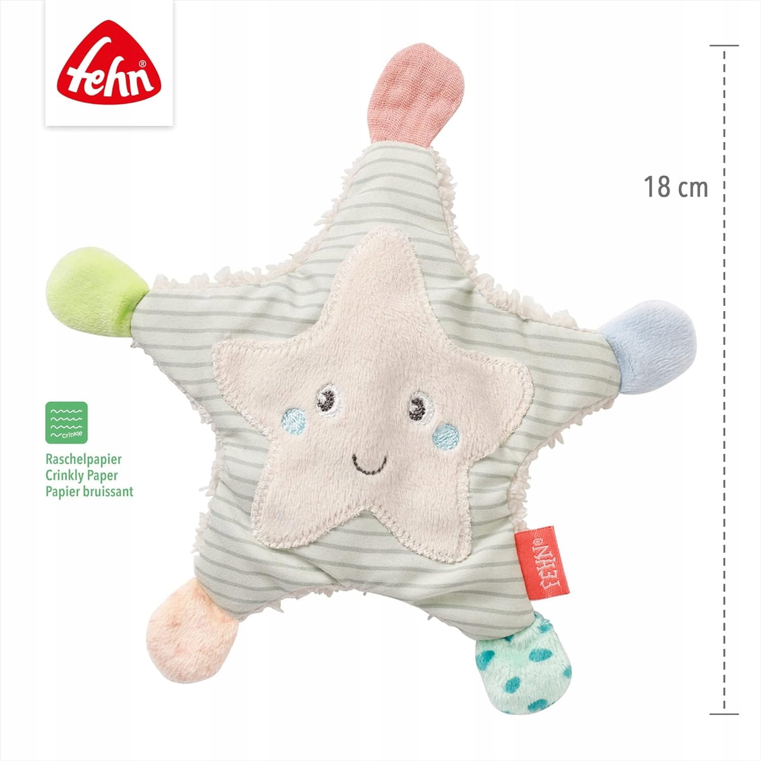 - Vzrušujúca hračka pre bábätká – táto mäkká šuštiaca hračka od Fehn je hračka, ktorú už dieťa nebude vyhadzovať: morská hviezdica pozýva na objavovanie, dotýkanie sa a hranie bez nudy