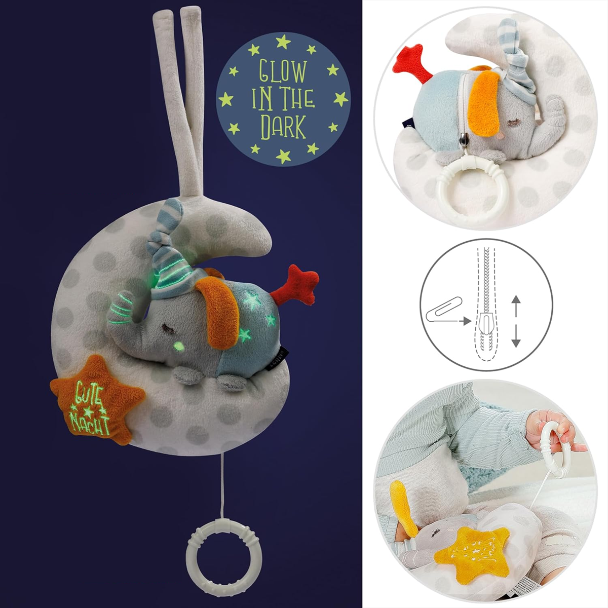 FEHN Svietiaca závesná hračka s hracím strojčekom na kočík a postieľku SLNKO NA MESIACI