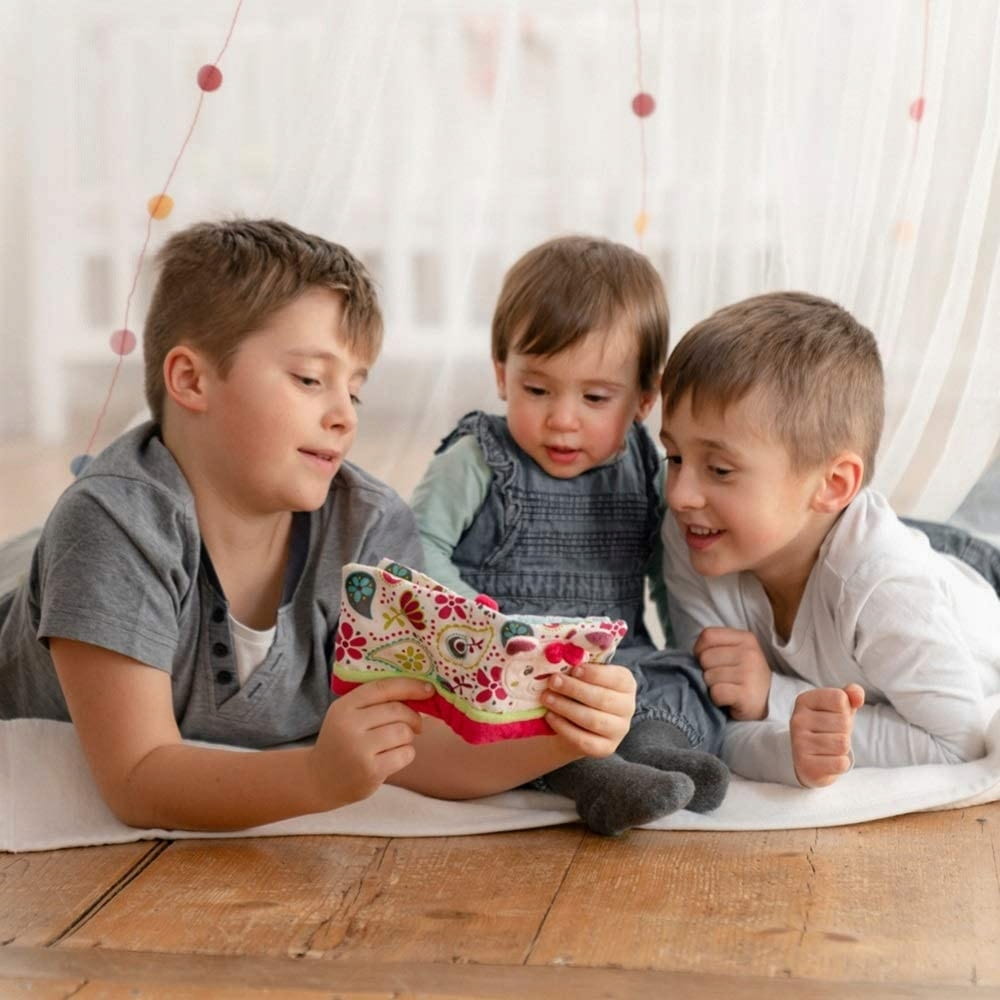 - Vďaka roztomilým obyvateľom pozýva táto roztomilá textilná knižka zaujímavými motívmi a rôznorodými materiálmi na objavovanie, skúmanie a pocity. Je vytvorená pre malé ruky, poskytuje dlhé hodiny zábavy a dobrú náladu počas každej prechádzky.