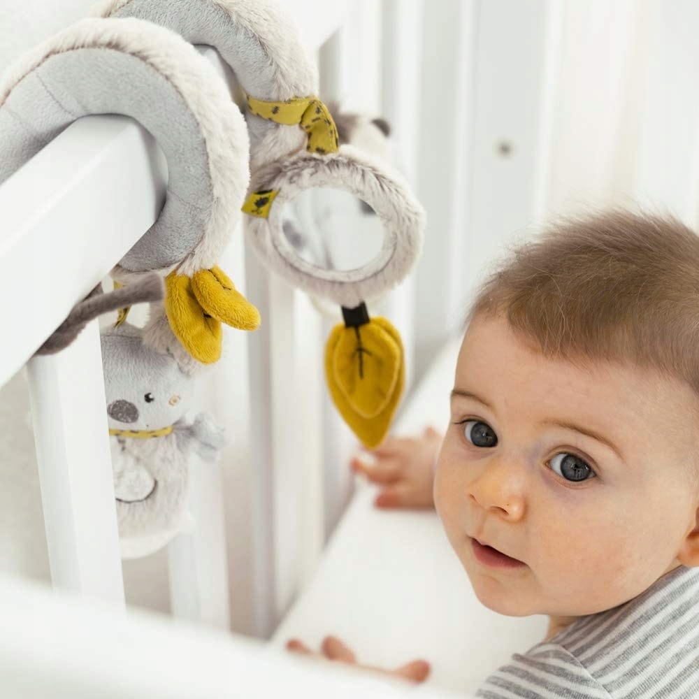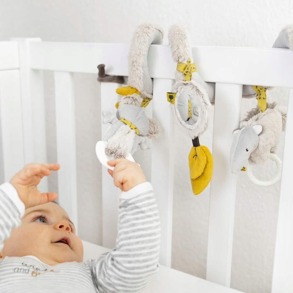 - Plyšová hračka - špirála, vhodná na upevnenie na zábradlie každého kočíka, postieľky alebo ohrádky.