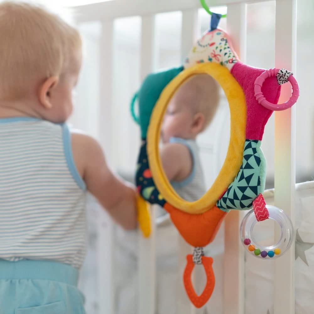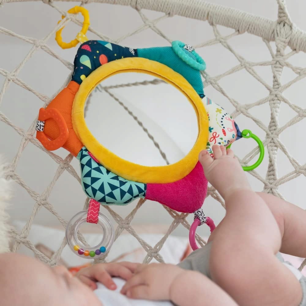 - Aktívna hračka sprevádza dievčatá aj chlapcov ako edukačná hračka. Zrkadlo pozýva rodičov a bábätko na zábavnú hru a podporuje tak vnímanie seba samého.