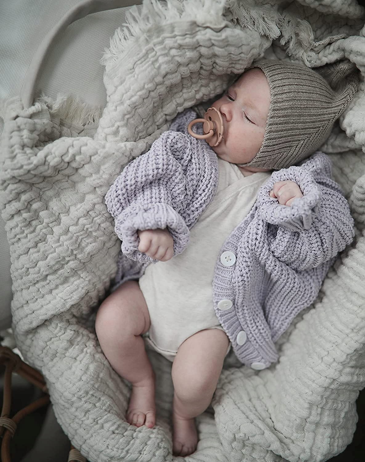 - Pokyny na starostlivosť – sterilizujte každý cumlík pred použitím tak, že ho zalejete vriacou vodou v čistej miske, necháte vyschnúť na čistom uteráku a vytlačíte zvyšnú vodu z cumlíka. Pred podaním dieťaťu sa uistite, že je cumlík úplne vychladnutý. Z hygienických dôvodov odporúčame výmenu cumlíkov každé 4 až 6 týždňov. Nepoužívajte cumlík, ktorý zmenil farbu alebo vykazuje nepravidelnosti. Keďže je vyrobený z prírodného kaučuku, cumlík sa môže počas používania mierne rozšíriť.