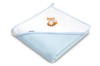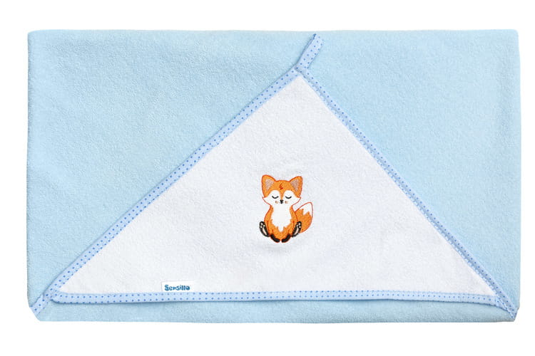 Prikrývka vyrobená z termo froté bavlny s malým podielom polyesteru. Je mäkká, príjemná na dotyk a ľahko sa žehlí. Prikrývka má veľký rozmer 100x100 cm a priestrannú kapucňu s roztomilou výšivkou.
