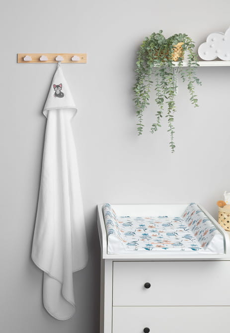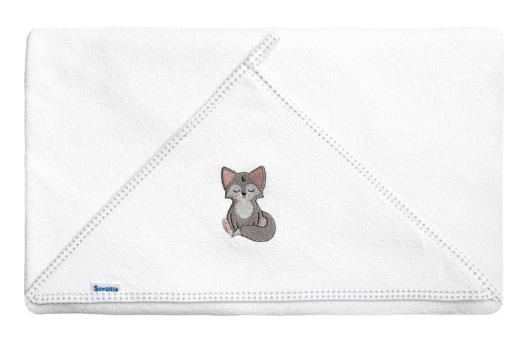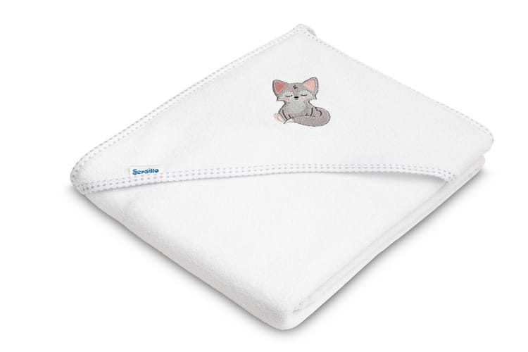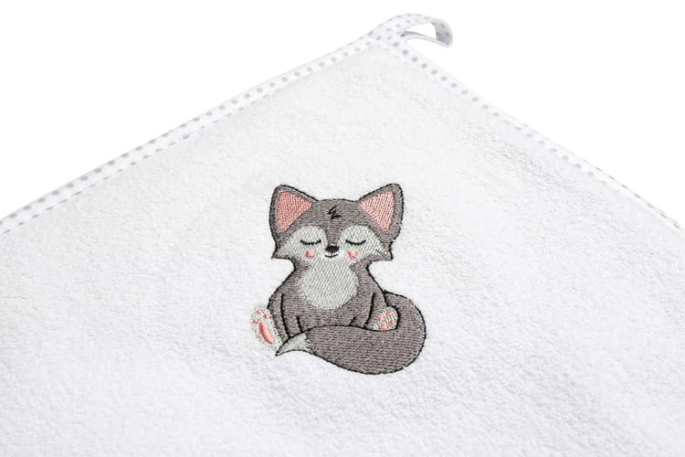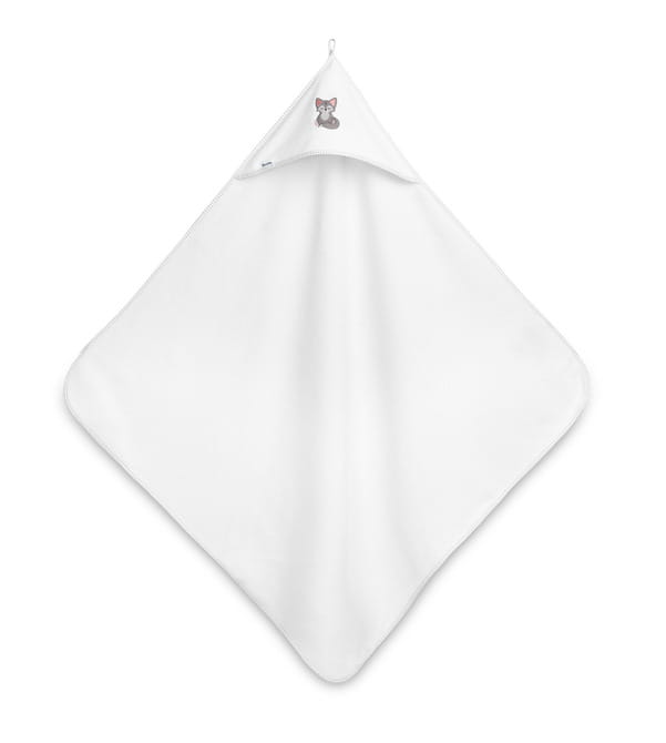 Prikrývka vyrobená z termo froté bavlny s malým podielom polyesteru. Je mäkká, príjemná na dotyk a ľahko sa žehlí. Prikrývka má veľký rozmer 100x100 cm a priestrannú kapucňu s roztomilou výšivkou.