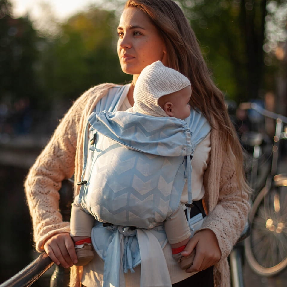 - Od samého začiatku: nosidlo pre bábätká Hop-Tye buckle môže byť použité ako nosidlo na bruchu, na chrbte a na boku. Od narodenia do konca veku (cca 2,5 – 20 kg).