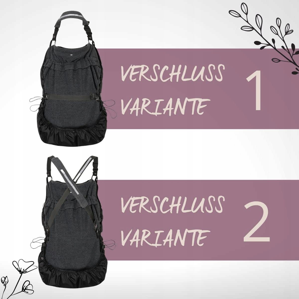 - Skladá sa z mäkkého fleeceového poťahu a nylonového dažďového poťahu. Môžete používať samostatne alebo spolu. Dažďový poťah môžete rýchlo a jednoducho pripevniť k fleeceovému poťahu pomocou praktických cvokov