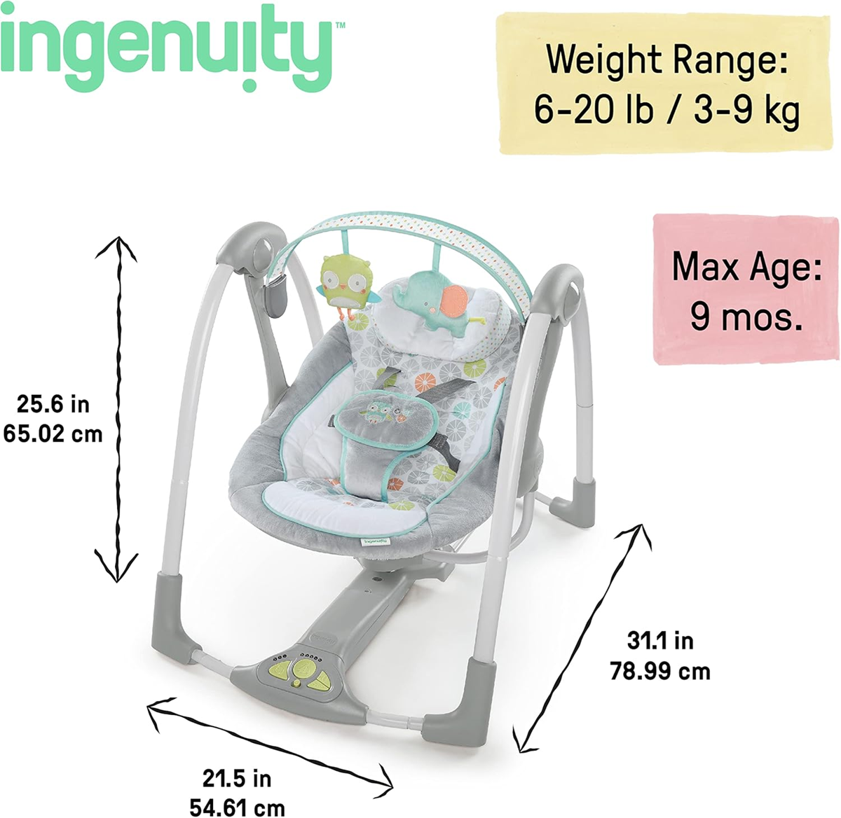 INGENUITY HUGS&HOOTS hojdačka s hudbou a pohybom
