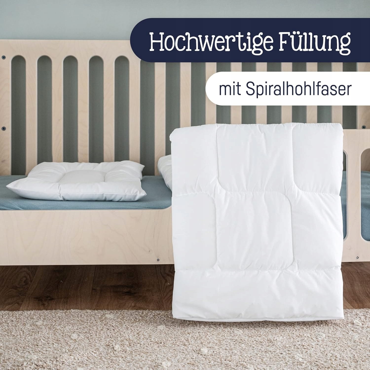 - Vysokokvalitná výplň zo silikónovaných špirálových dutých vlákien je ideálnou zložkou detskej prikrývky vďaka svojim izolačným vlastnostiam a schopnosti udržiavať teplo. Umožňuje dobré riadenie vlhkosti, prepúšťa vzduch a reguluje teplotu.