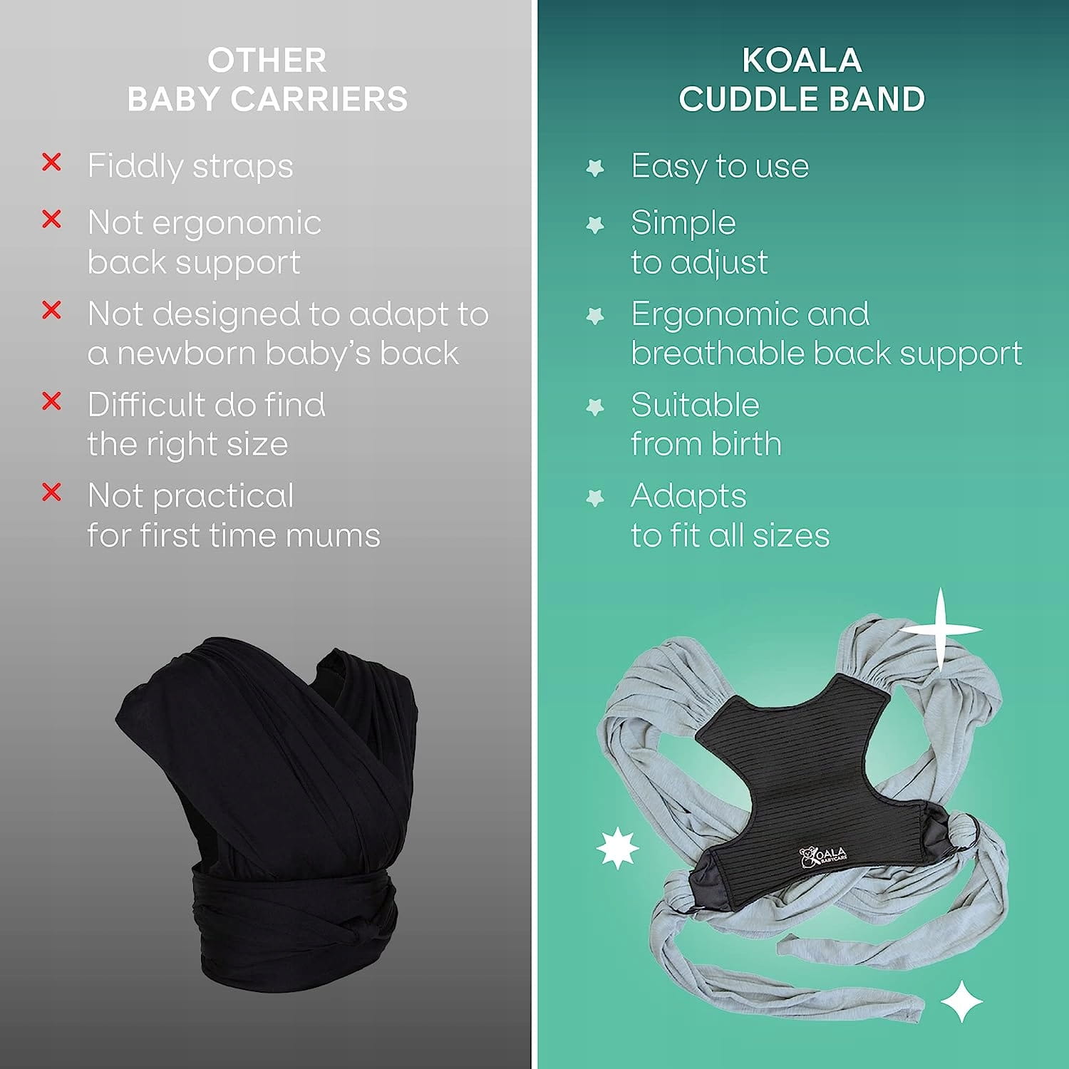 - PERFEKTNÉ NA DLHŠIE POUŽÍVANIE: Tradičné nosítka sa počas používania uvoľňujú a preto vyžadujú časté viazanie. Koala Cuddle Band vždy zostane na svojom mieste vďaka krúžkovému uzáveru. Navyše všetky úpravy budú veľmi jednoduché. Materiál: 95% bavlna, 5% spandex (iba jedným smerom)